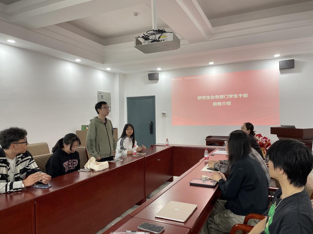 会议伊始,李孟垚简单介绍了本次大会召开的目的、到会领导及会议流程。随后大会第一项,研究生会每一位成员轮流进行了自我介绍及对未来工作的展望,促进了成员之间的相互认识和了解。