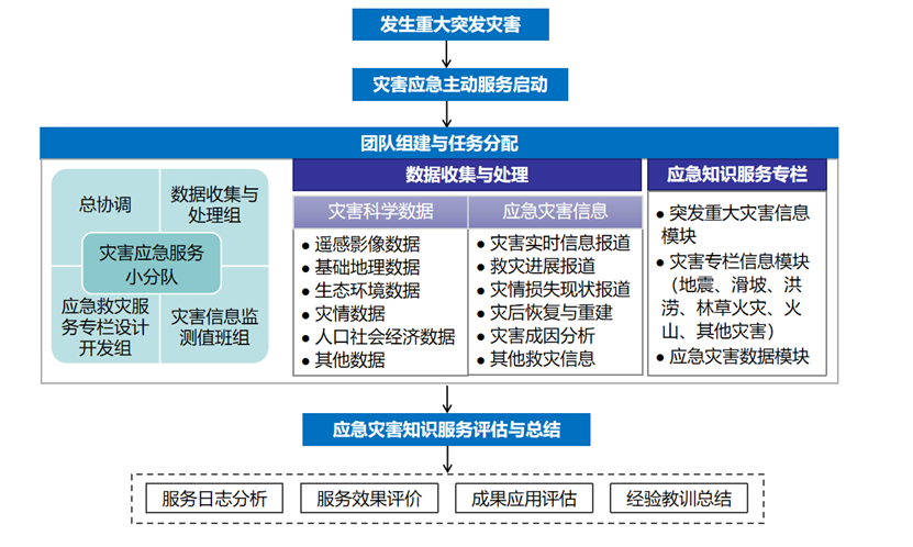 制定“灾害应急知识服务规范”,建立一套系统化、标准化的灾害应急知识服务工作体系。该规范主要针对重大自然灾害发生时的应急知识服务工作,旨在为灾害应急主动知识服务的全流程提供科学指导,包括服务的快速启动、规范实施、全面总结和持续改进等关键环节。